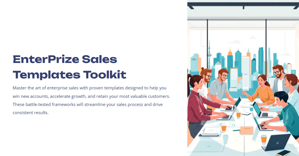 A proven set of enterprise sales templates and tools designed to help you win high-value B2B deals, close faster, and boost your sales confidence.